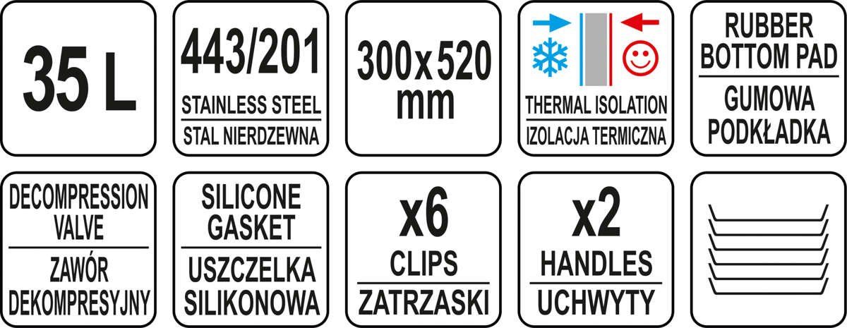YATO Gasztronómiai termosz 35 L rozsdamentes acél
